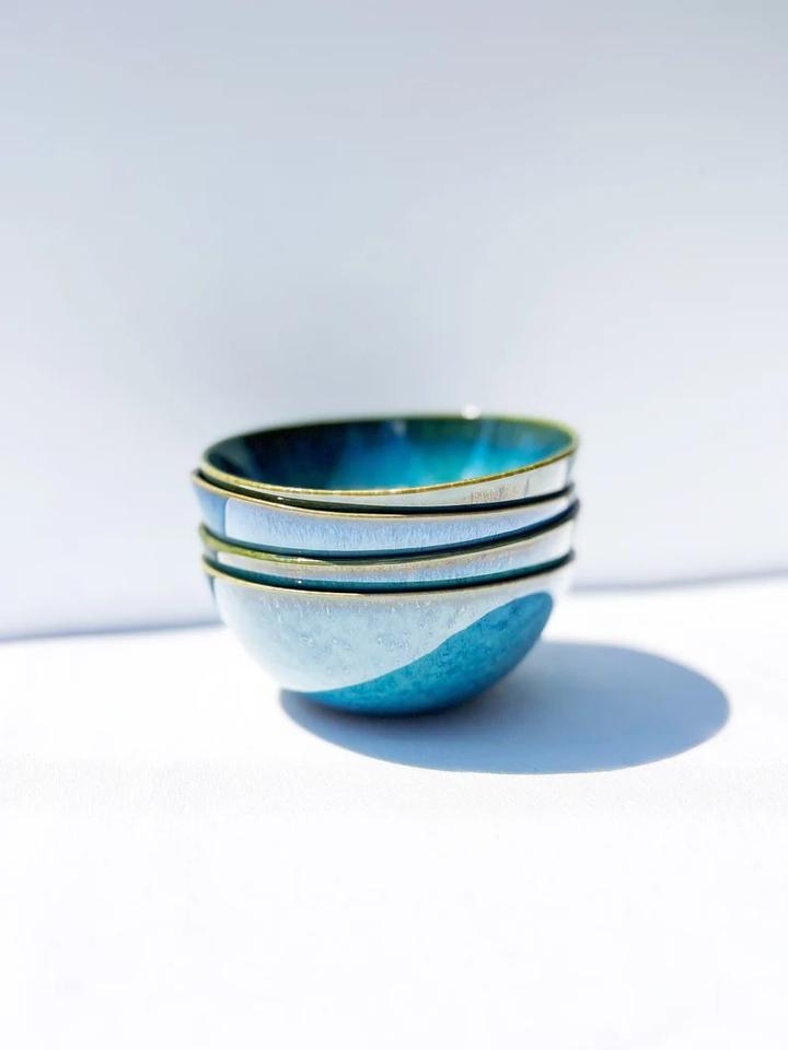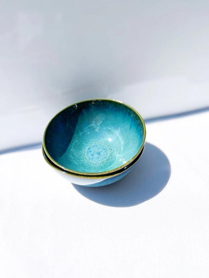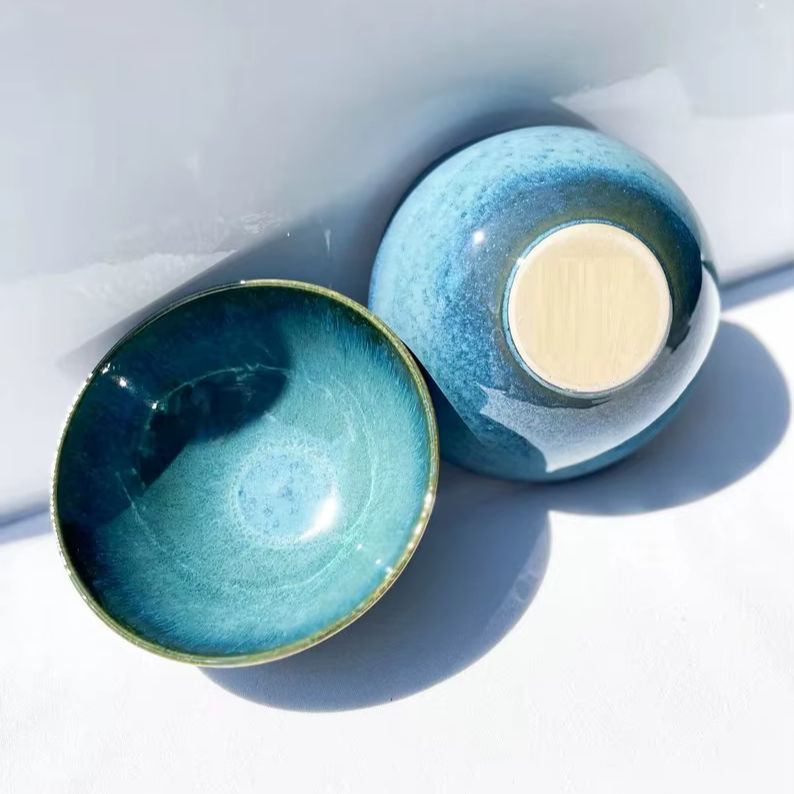 ชามเซรามิกขนาดกะทัดรัดเคลือบเงาสีฟ้าสดใส รูปทรงลึกเรียบเนียน ปลอดภัยสำหรับอาหาร ทนทาน เหมาะสำหรับตกแต่งโต๊ะอาหารสไตล์ร่วมสมัย