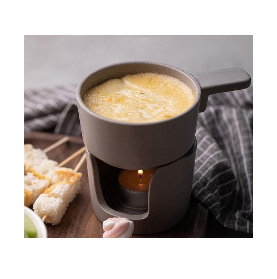 ชุดฟองดูเซรามิกขนาดกะทัดรัดพร้อมที่วางหม้อและส้อมทนความร้อนเหมาะสำหรับช็อคโกแลตชีสผลไม้และมาร์ชเมลโลว์