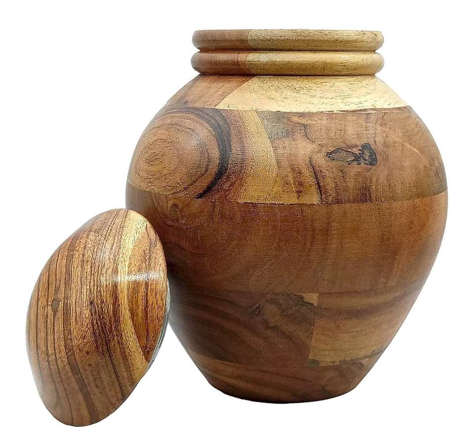 โกศบรรจุอัฐิไม้สีน้ำตาลเข้มขนาดกะทัดรัด รูปทรงโค้งมนเรียบเนียน พร้อมฝาปิดแน่นหนา สำหรับใช้ในพิธีที่ระลึกส่วนบุคคล