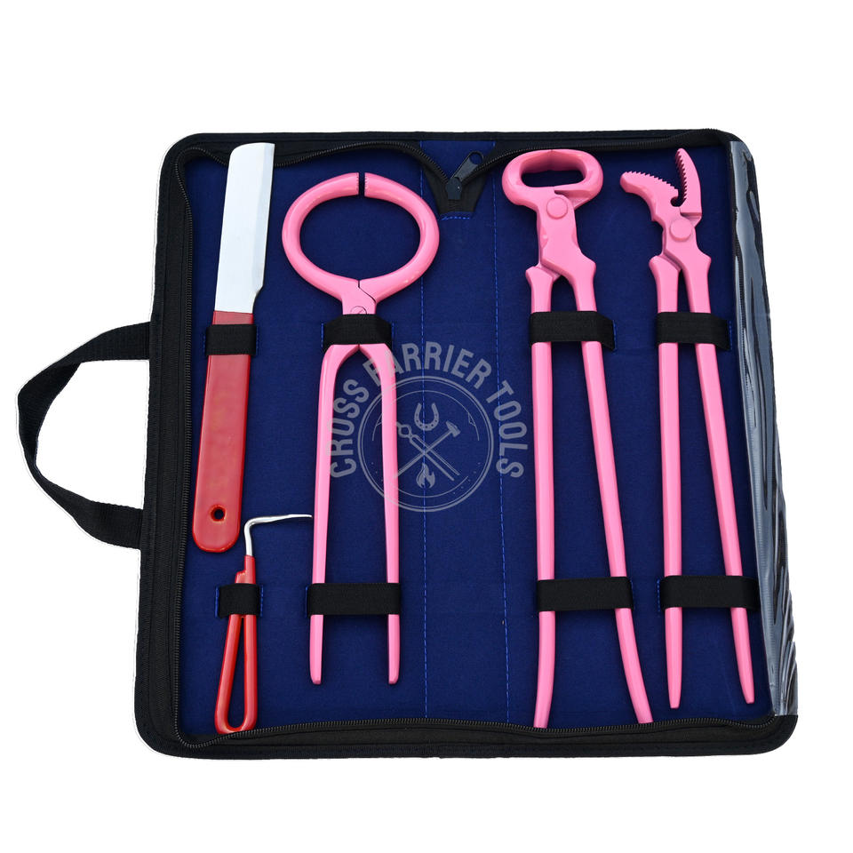 ชุดอุปกรณ์ดูแลกีบม้าแบบพกพา คีมตัดกีบม้า 15 นิ้ว เครื่องมือตรวจอาการขาเจ็บ คีมตัดกีบม้าแบบปลายมน คีมตัดกีบม้าเคลือบสีชมพู ชุดคีมและที่แคะกีบม้า