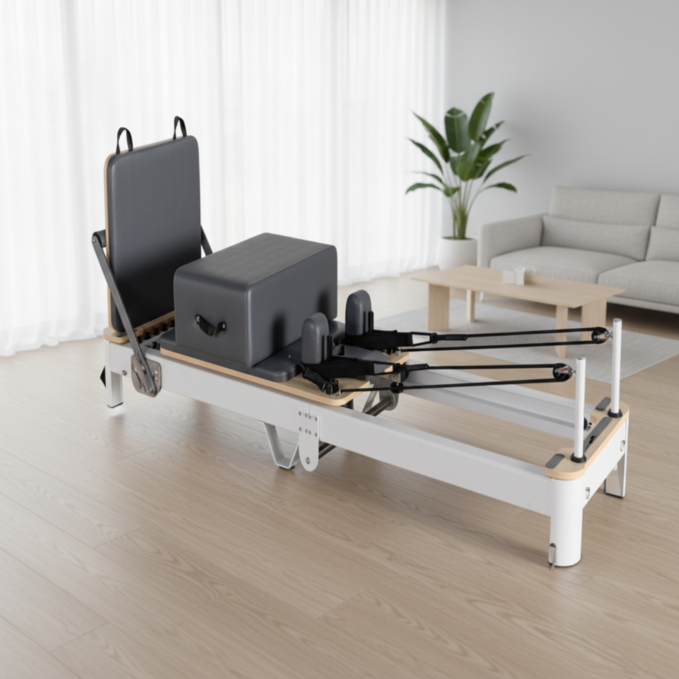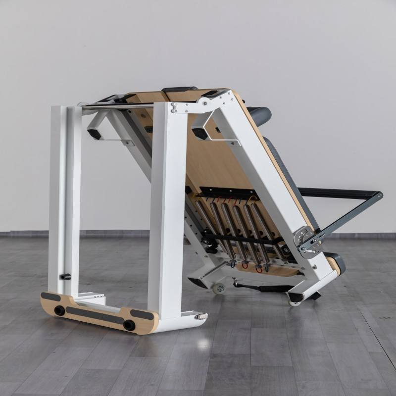 เครื่องพิลาทิสแบบพับได้ขนาดกะทัดรัด พร้อมฐานที่กะทัดรัดและมั่นคง เตียงรีฟอร์มเมอร์ขนาดกะทัดรัดสำหรับโปรแกรมฉลากส่วนตัว