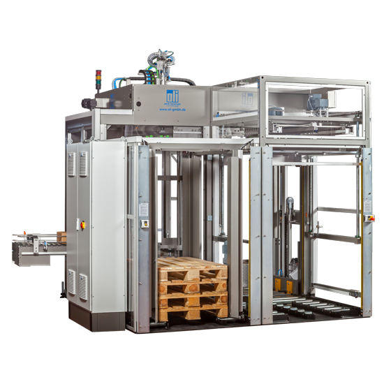 เครื่องพาเลทไทเซอร์แบบกะทัดรัดด้านเดียว สำหรับโซลูชันสถานีเดียวที่ประหยัดพื้นที่สำหรับโรงงานผลิต พร้อมระบบขนถ่ายที่ง่ายดาย