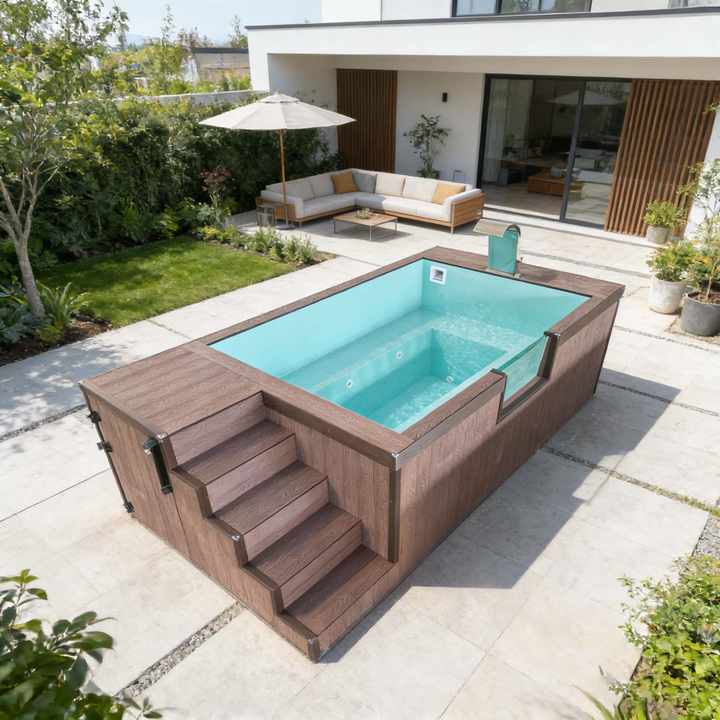 Compact Plunge Pool with Fiberglass Shell and Hydromassage Jets for Therapeutic Outdoor Use Pool