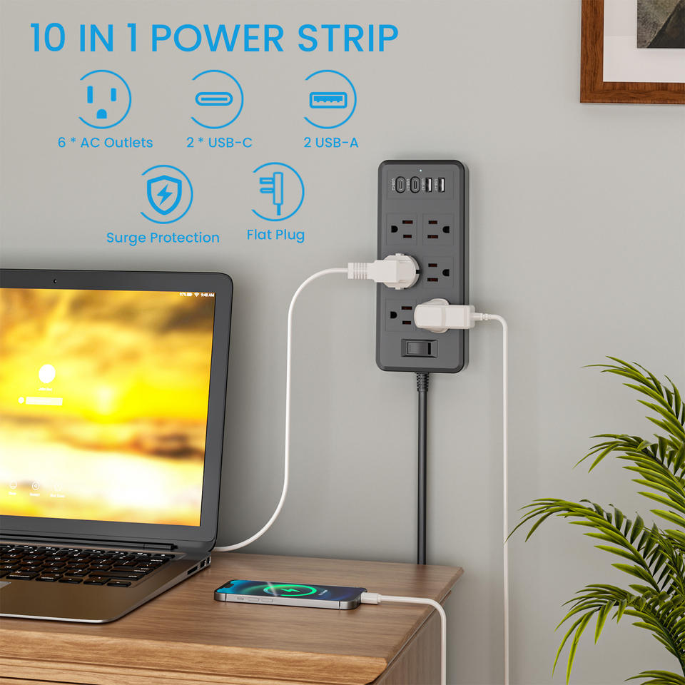 ปลั๊กไฟ6ช่องแบบแบนขนาดกะทัดรัดประหยัดพื้นที่สำหรับพื้นที่ขนาดเล็ก