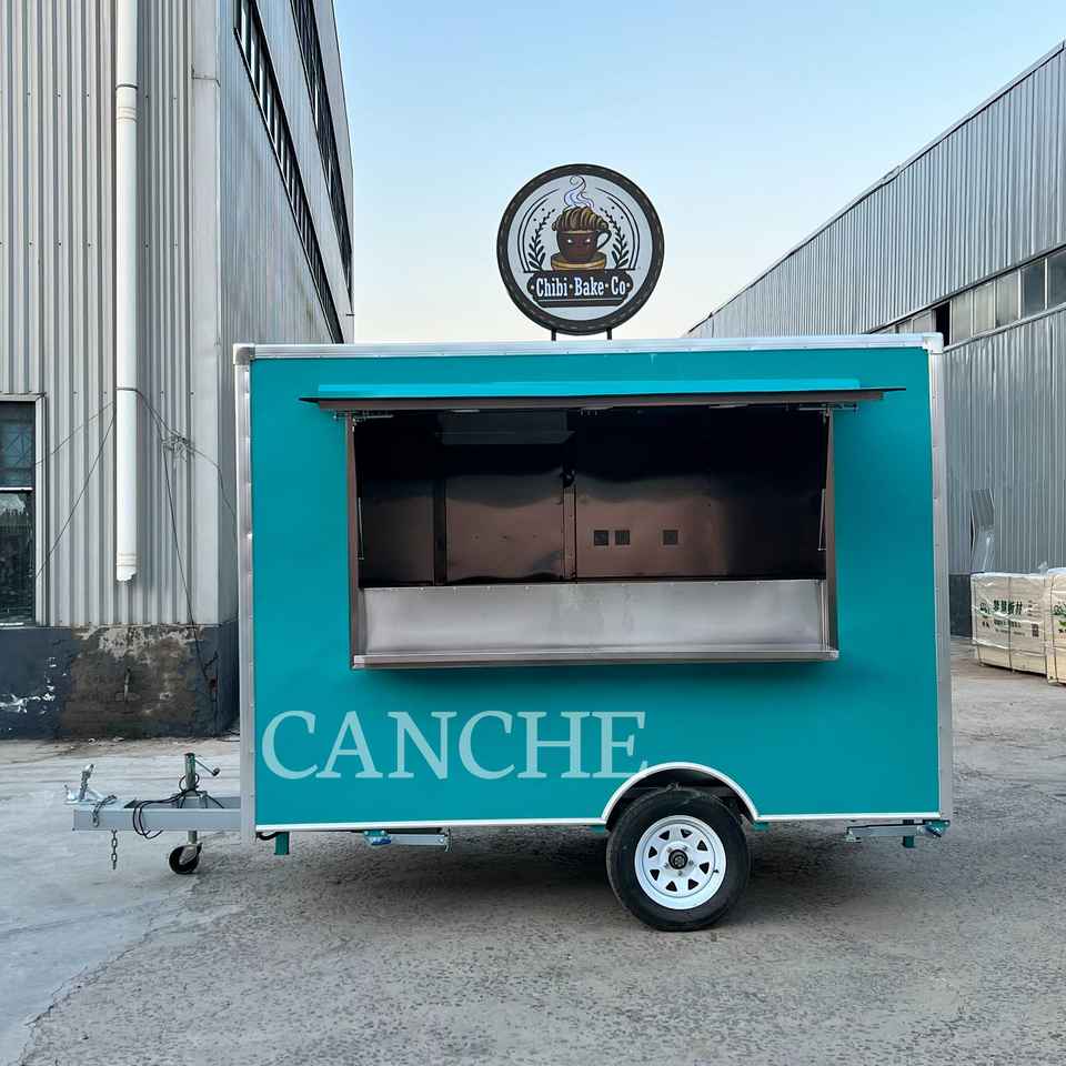 เครื่องพ่วงอาหารเคลื่อนที่สำหรับขายปลีกขนมขบเคี้ยวผลิตภัณฑ์นมขนมฮอทด็อกทำจากบาร์บีคิวทำจากข้าวโพด