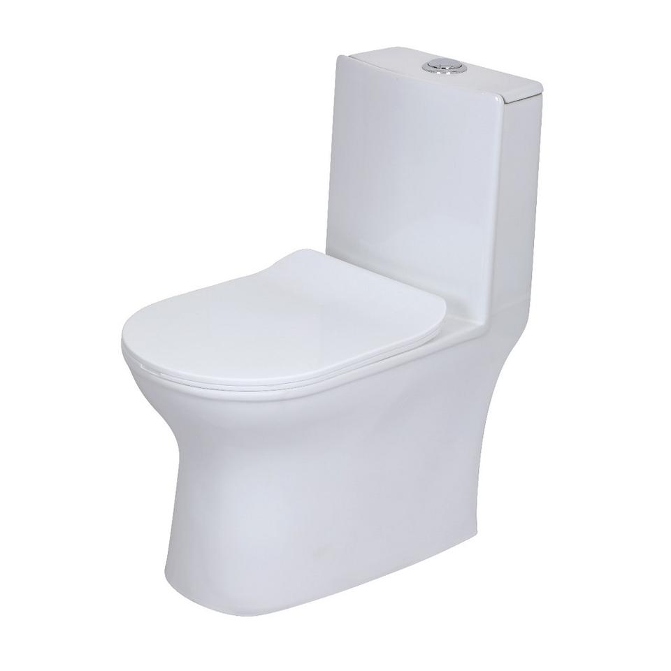 ห้องน้ำเซรามิกสีขาวขนาดกะทัดรัดหนึ่งชิ้นพร้อมที่นั่งแบบฟลัชและนุ่มประหยัดน้ำสำหรับบ้านสมัยใหม่จากอินเดีย