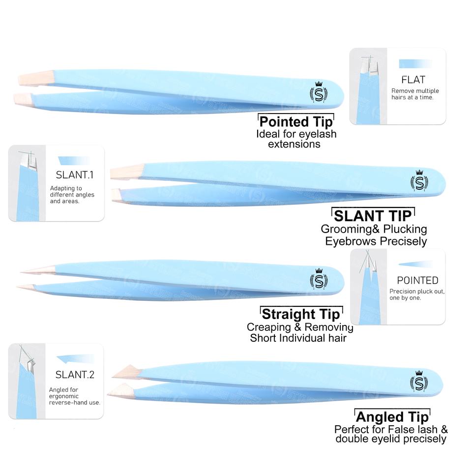 ชุดแหนบเพื่อความงามขนาดกะทัดรัดพร้อมที่จับกันลื่นมีตัวเลือกปลายเรียวและแหลมสำหรับขนคิ้วและขนบนใบหน้าอย่างละเอียด