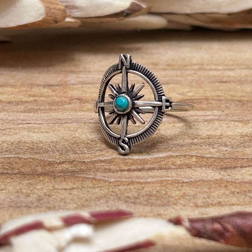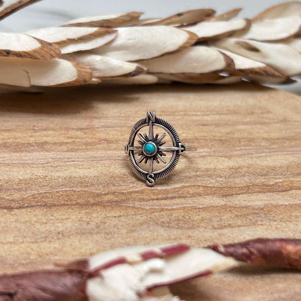 แหวนรูปดาวพร้อมเข็มทิศ ดีไซน์แบบชาติพันธุ์ ชุบทอง 18K สำหรับผู้หญิง ผิวสีเงินออกซิไดซ์ ประดับด้วยเทอร์ควอยซ์ ลายเข็มทิศ เหมาะสำหรับงานปาร์ตี้ ขายส่ง