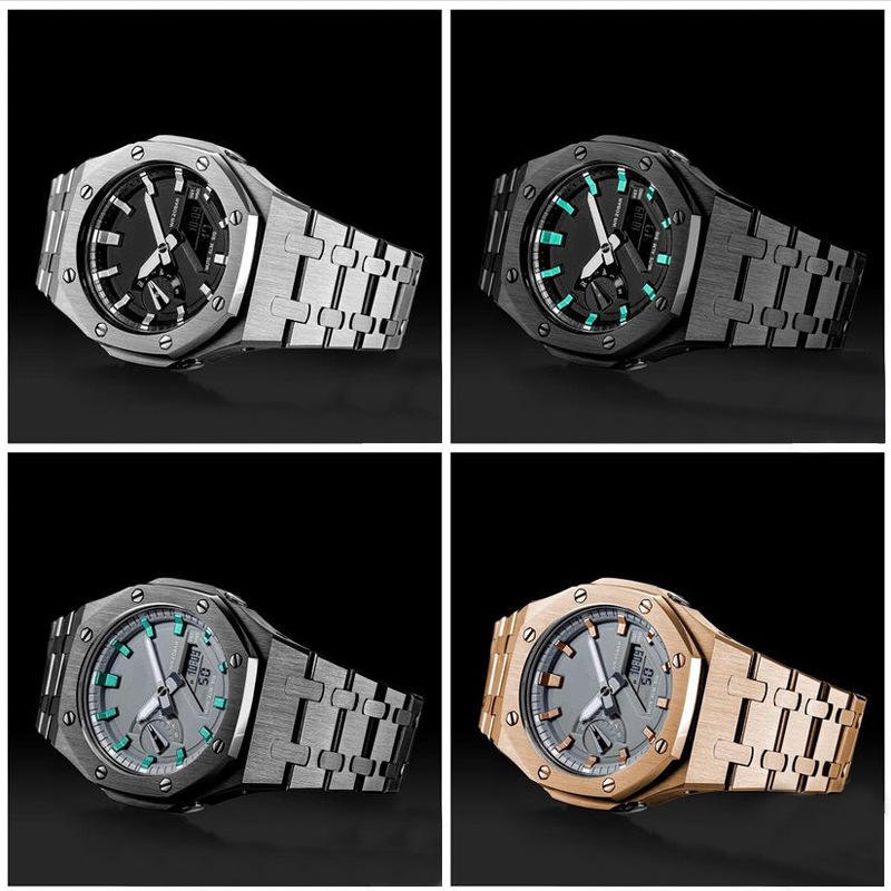 สายนาฬิกาข้อมือสแตนเลสสตีลขนาด 22 มม. รุ่น GA2100/GM2100 Farmhouse Oak GMAS-2100 หรูหรา ระบายอากาศได้ดี พร้อมตัวล็อคแบบ D