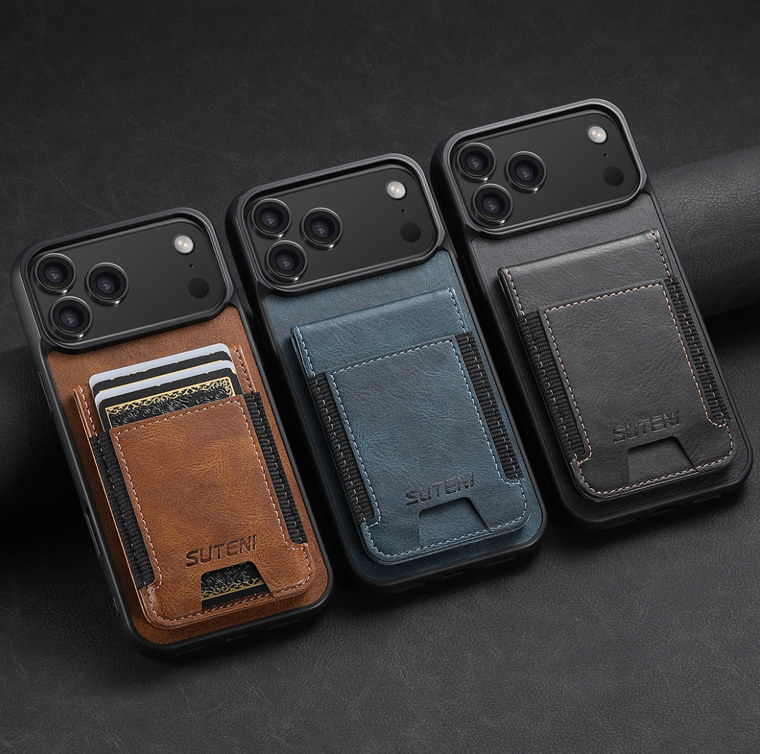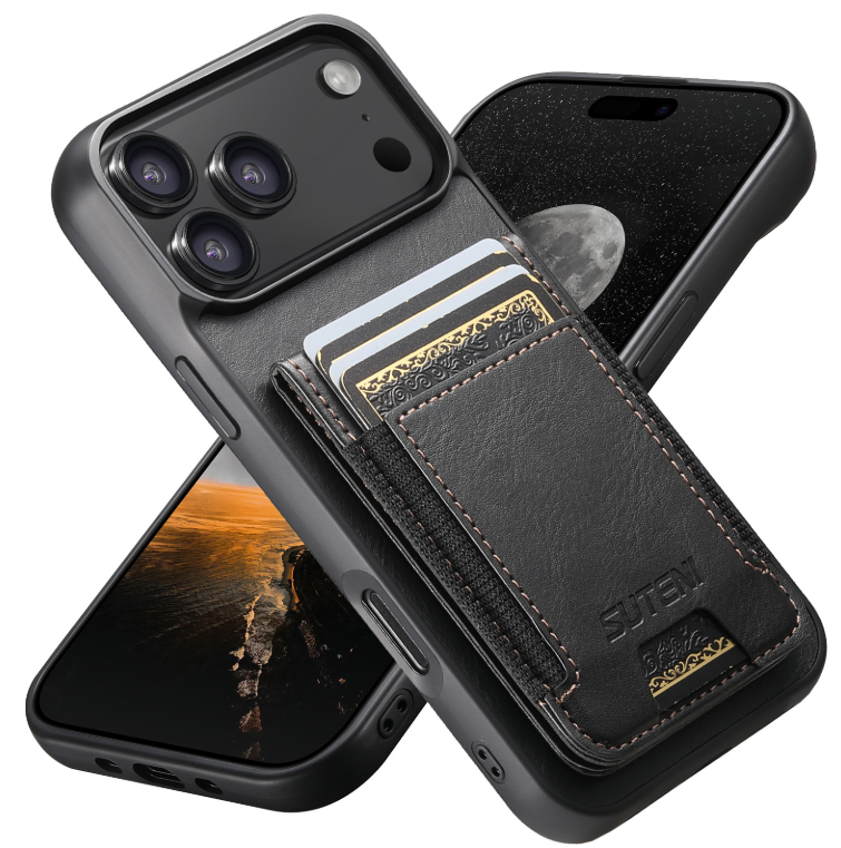 เคสโทรศัพท์แบบกระเป๋าหนังเทียมพร้อมที่วางโทรศัพท์และที่ใส่บัตรแม่เหล็กสำหรับชาร์จไร้สายที่ใช้งานร่วมกันได้ สำหรับ iPhone 17 Pro Max 16 15 14