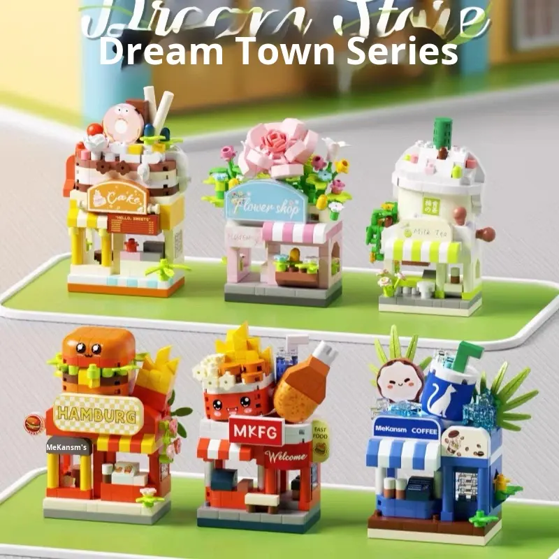 ใช้งานร่วมกับรถเข็นขายของดรีมทาวน์ ร้านดอกไม้ ฉากถนนในเมือง ชุดตัวต่อพลาสติก ABS 40 ชิ้น ของเล่นเสริมพัฒนาการ