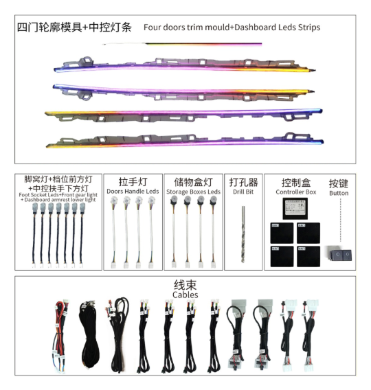 ใช้ได้กับอะคริลิค avancier/urv 2017 2024รอบทิศทางดูออร่าซิงค์ RGB สีสันสดใสภายในรถ