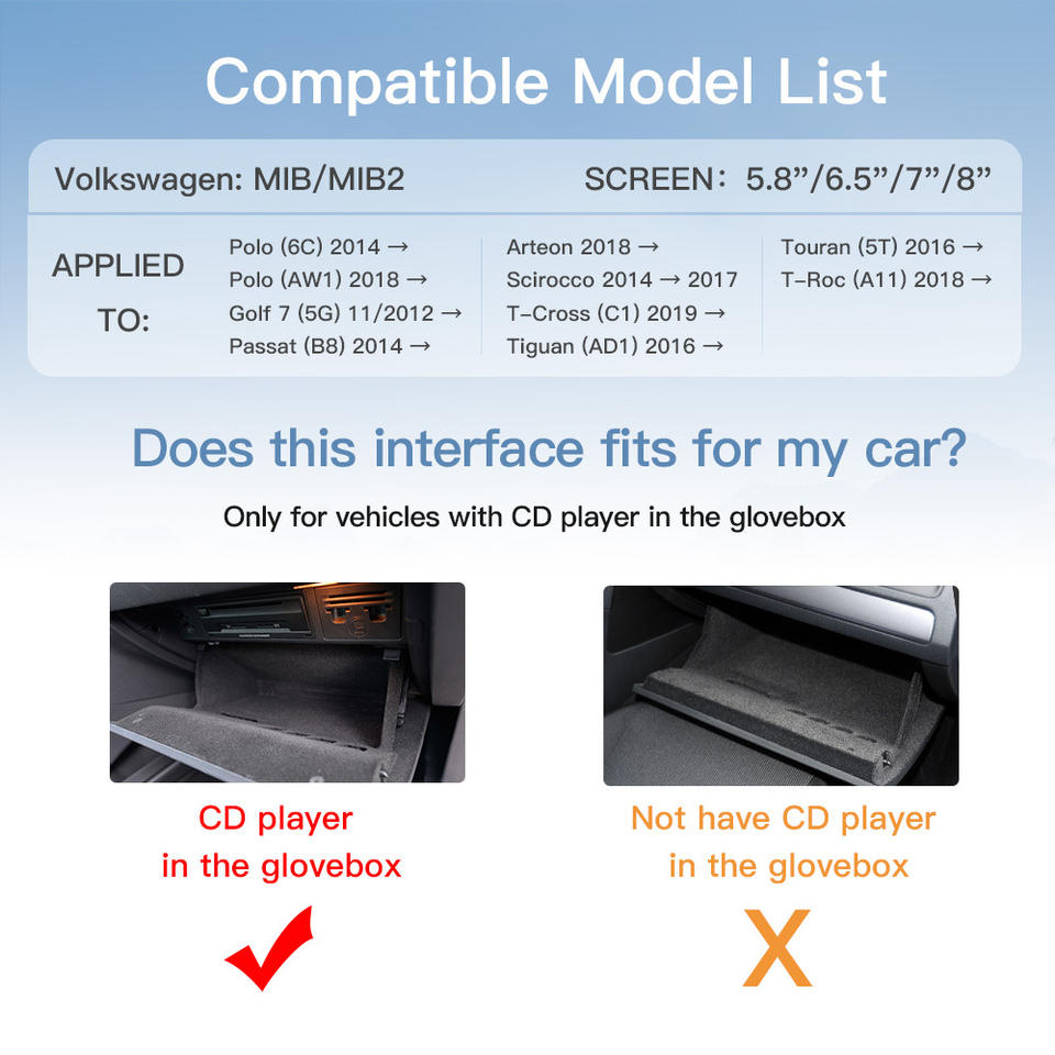 ใช้ได้กับ Volkswagen touaregu/ Golf7 Tiguan teramont MIB2ไร้สาย CarPlay Android Auto รับประกัน12เดือน