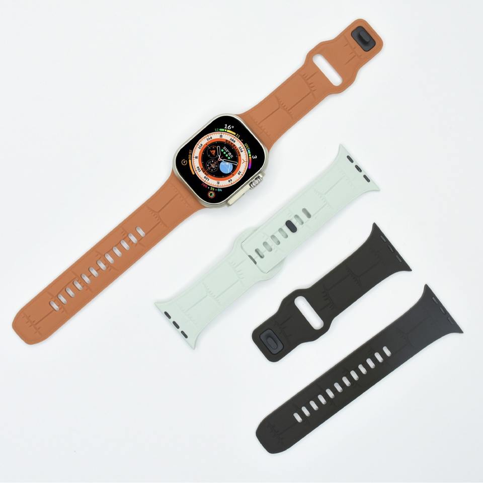 สายนาฬิกาซิลิโคนสปอร์ต หัวเข็มขัดสี่เหลี่ยมผืนผ้ามีผิวสัมผัสการออกแบบสายนาฬิกา