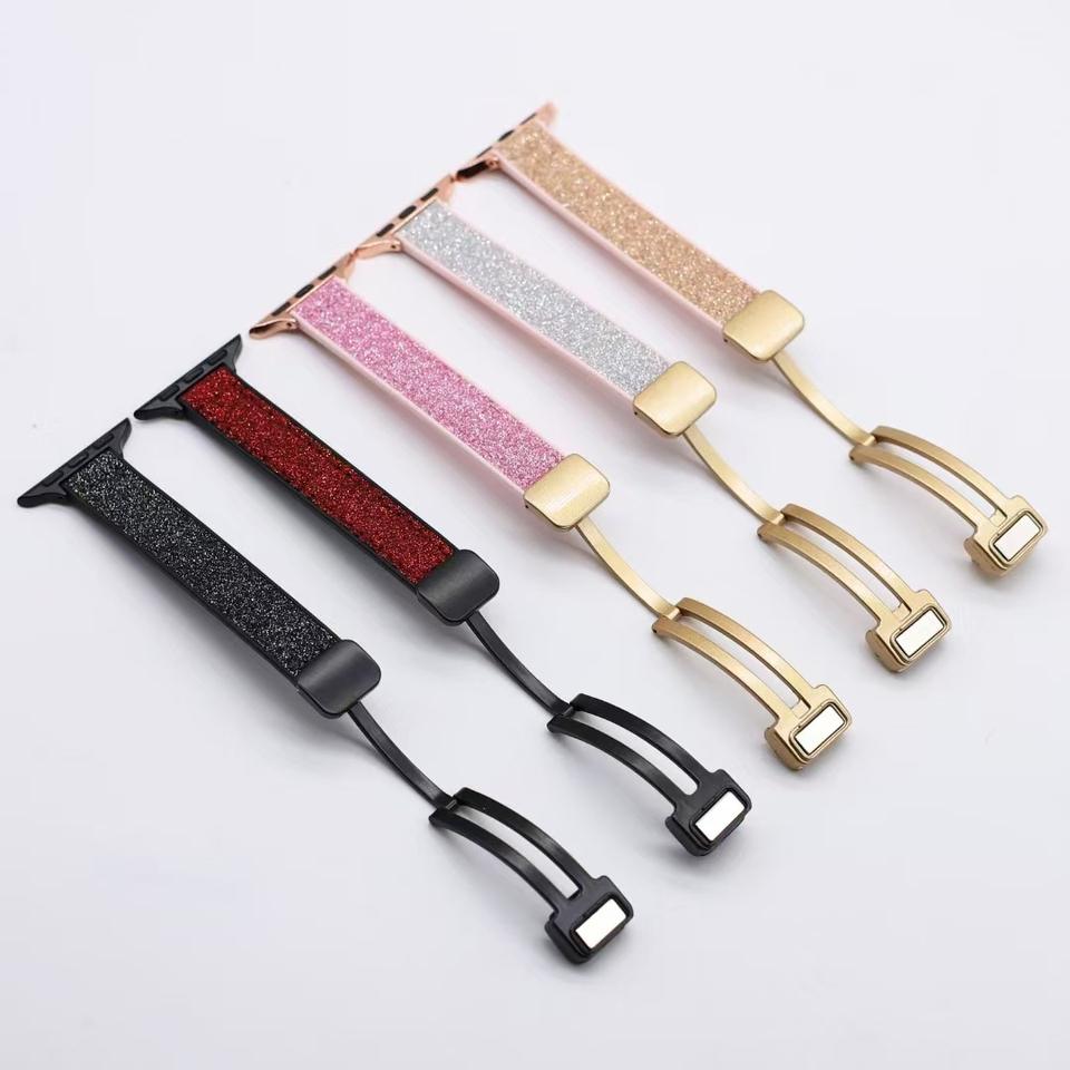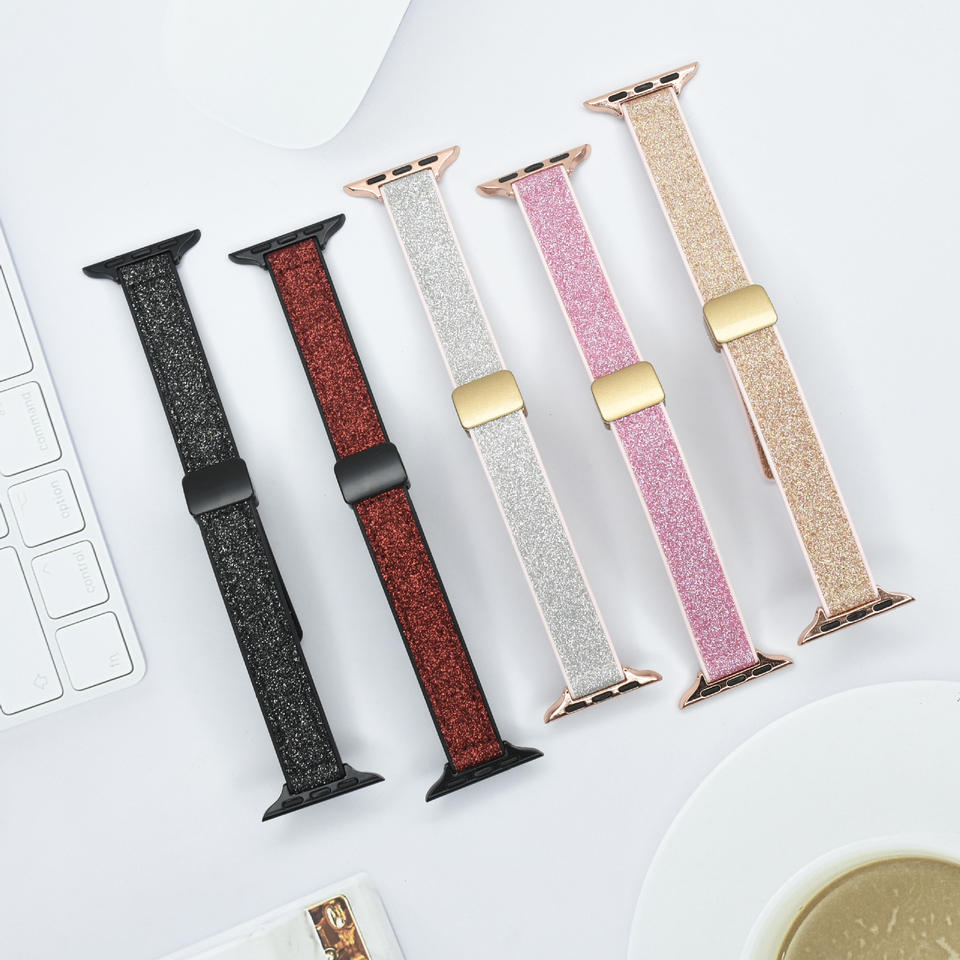 ชื่อสินค้า:สายนาฬิกาแม่เหล็กซิลิโคนผสมทรายทองกลิตเตอร์