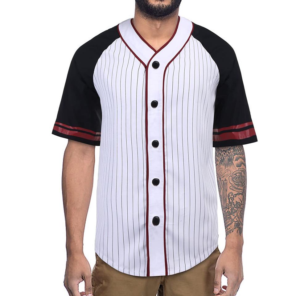 เสื้อเบสบอล3/4แขนแร็กแลนเสื้อเบสบอลลายทางมีกระดุมสั่งทำ