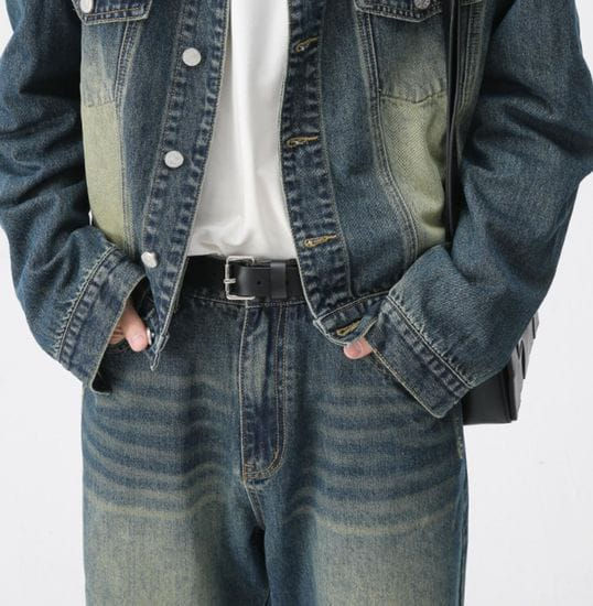 ชุดเซ็ตเสื้อแจ็กเก็ตยีนส์และกางเกงยีนส์สำหรับผู้ชาย
