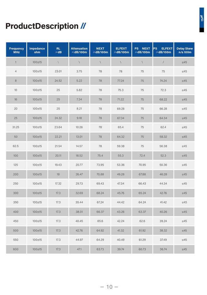 Impedance:100 Ohm+-15%