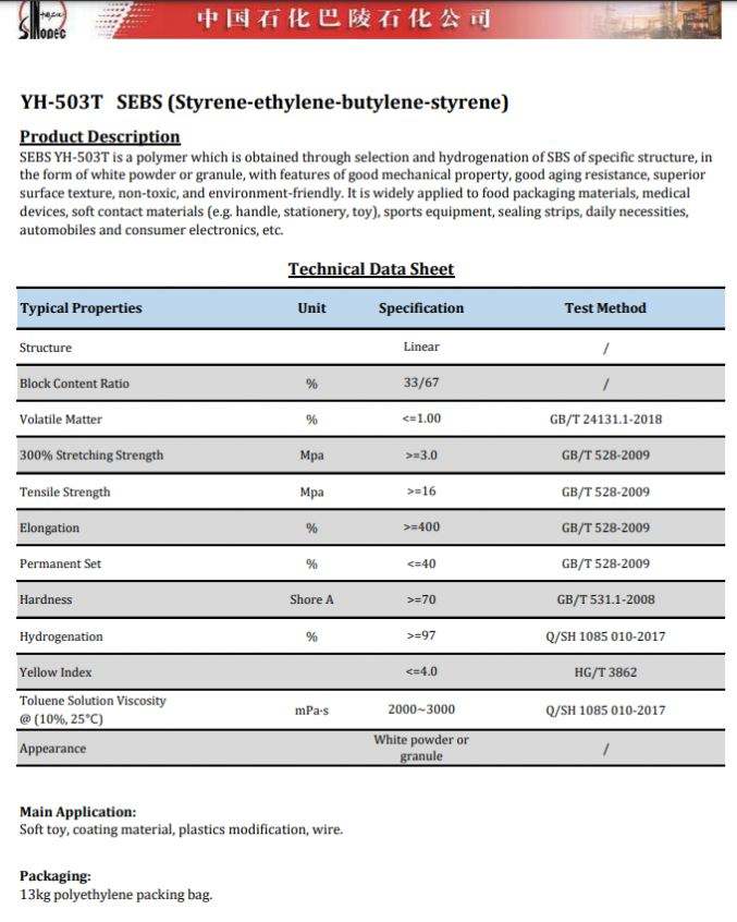 ยางเทอร์โมพลาสติกดัดแปลงพลาสติก SBS YH-792 SBS YH-503T/ YH-502T/YH-602T/YH-604T