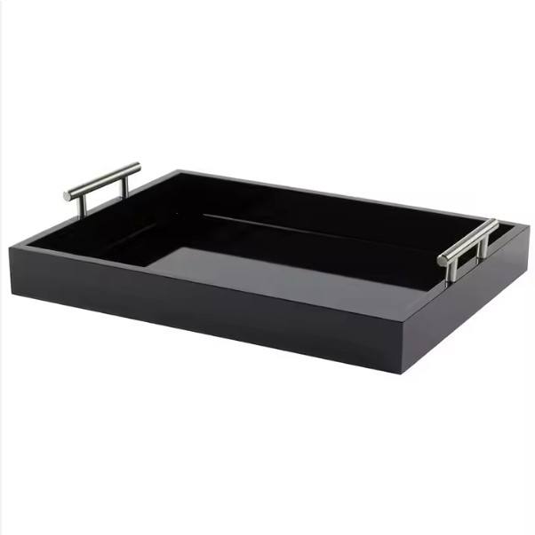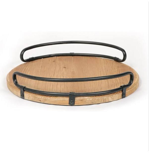 ถาดไม้อเนกประสงค์พร้อมที่จับโลหะสำหรับร้านอาหารในบ้านถาดเสิร์ฟแบบยั่งยืน