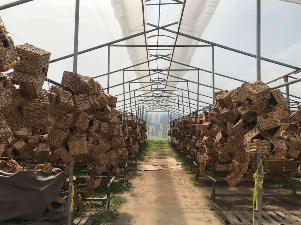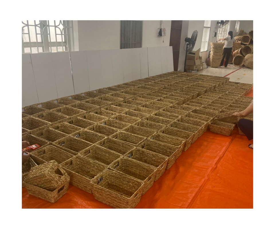ตะกร้าสานผักตบชวาพับเก็บได้พร้อมหูหิ้วแบบพกพา