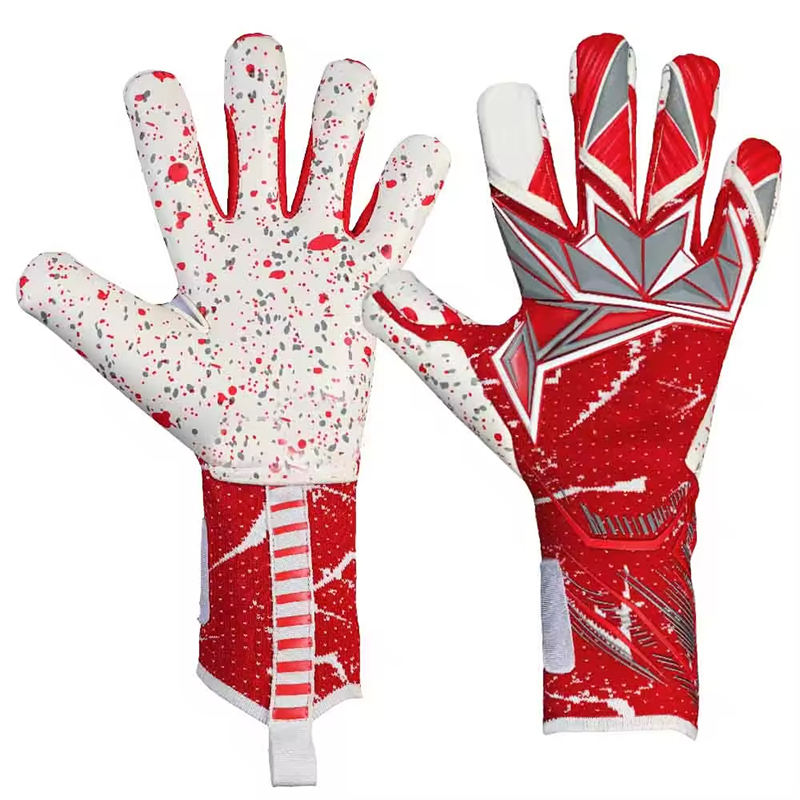 ถุงมือผู้รักษาประตูที่แข็งแรงทนทาน พร้อมบริเวณป้องกันนิ้วหัวแม่มือเพื่อเพิ่มความทนทานในการใช้งานหนัก
