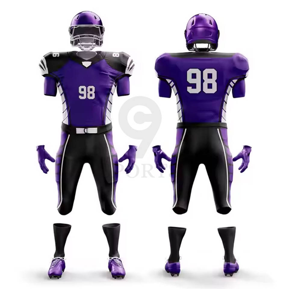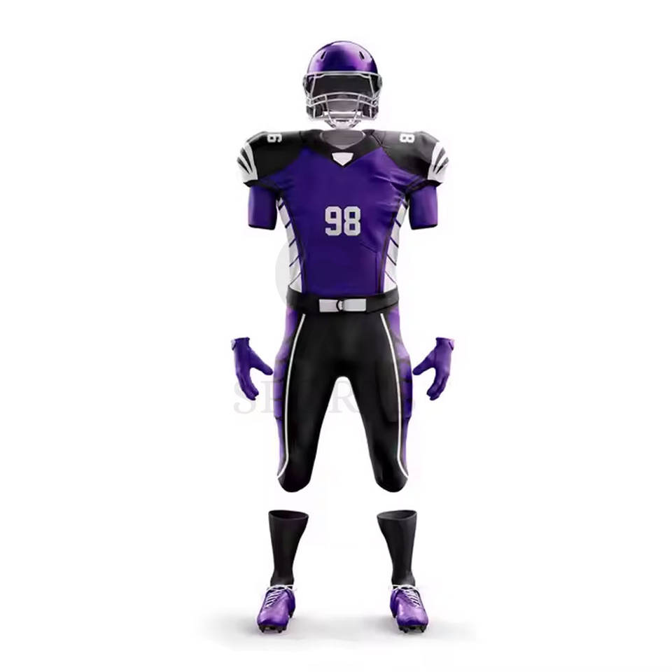 ชุดอเมริกันฟุตบอลสำหรับเด็กและผู้ใหญ่พร้อมสีของทีมและโลโก้แบบกำหนดเองชุดอเมริกันฟุตบอล