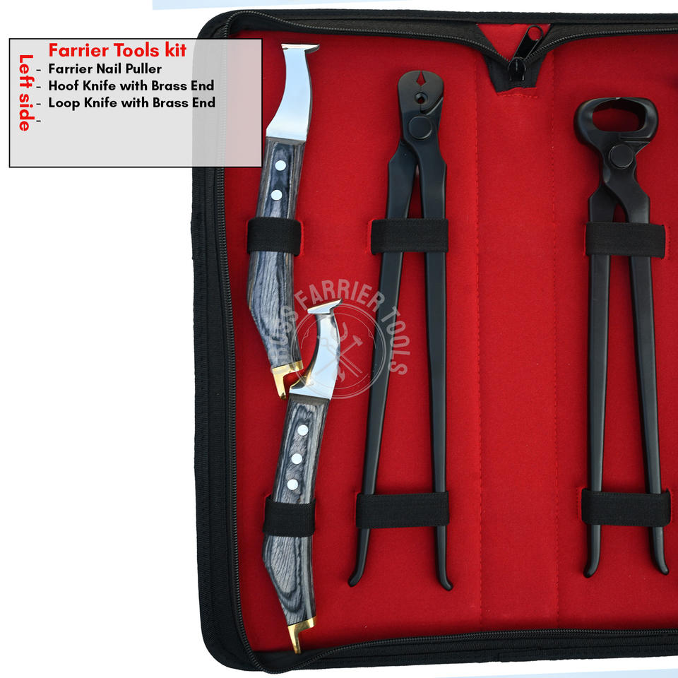 ชื่อสินค้า:ชุดอุปกรณ์ดูแลกีบม้าครบชุด สีดำ ประกอบด้วยคีมตัดและเครื่องมือสำหรับตอกตะปู