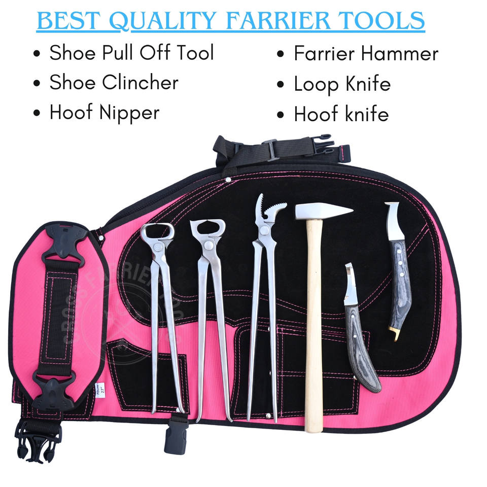 คำหลัก:ชุดเครื่องมือช่างเกือกม้า ผ้ากันเปื้อนนิรภัยสีชมพู กรรไกรตัดกีบ