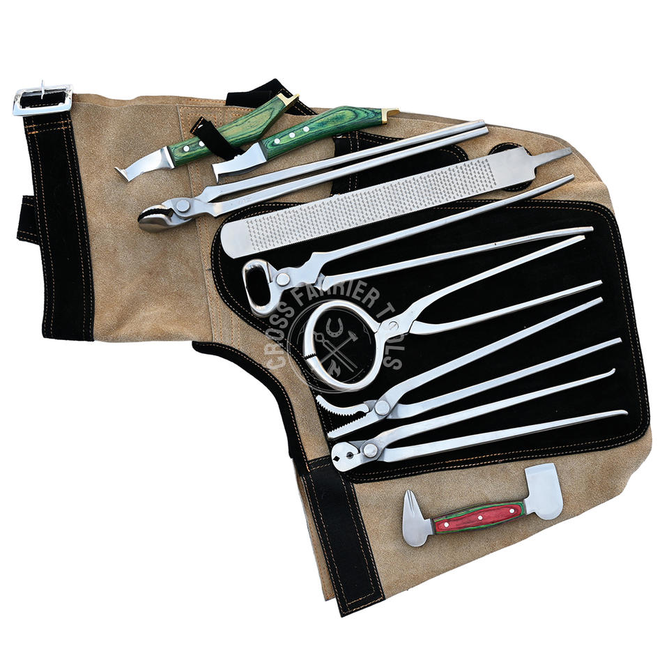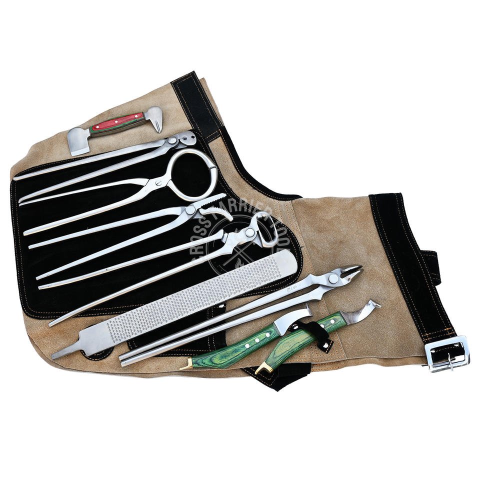 คุณภาพ:ชุดเครื่องมือช่างตีเกือกม้าคุณภาพสูง พร้อมผ้ากันเปื้อนหนังและคีมตัดเกือกม้า
