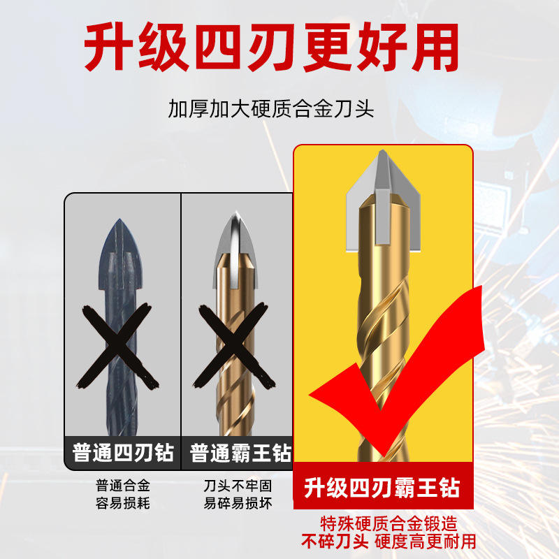ดอกสว่านเจาะกระเบื้องเซรามิกแบบสี่แฉก สำหรับงานเจาะกระจกไฟฟ้า ดอกสว่านหกเหลี่ยมสำหรับงานเจาะคอนกรีตและงานก่ออิฐ