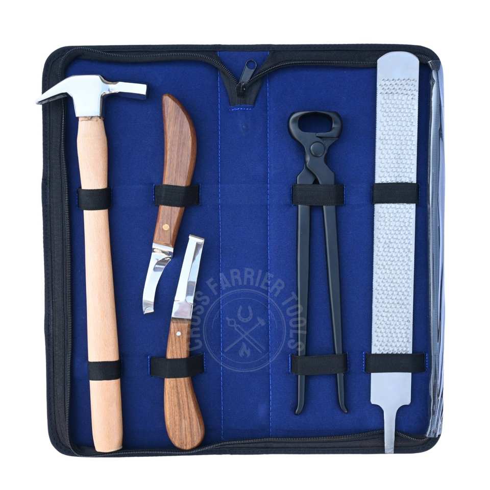 ชุดเครื่องมือดูแลกีบม้าครบชุด สีดำ ขนาด 12 นิ้ว คีมตัดกีบ ค้อนตอกตะปู มีดตัดกีบโค้ง ใบมีด D และตะไบสองด้าน