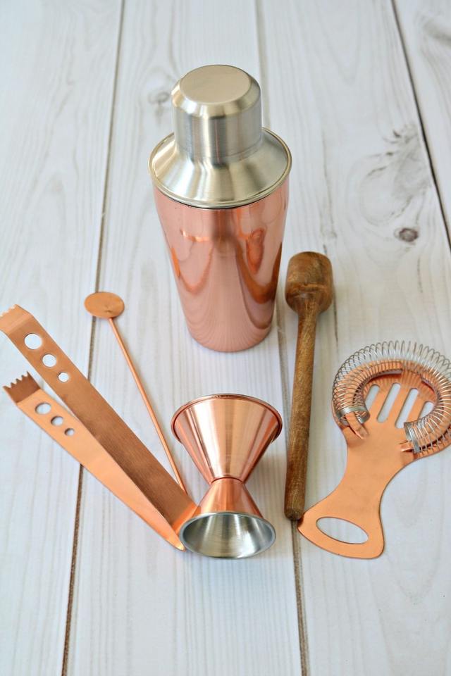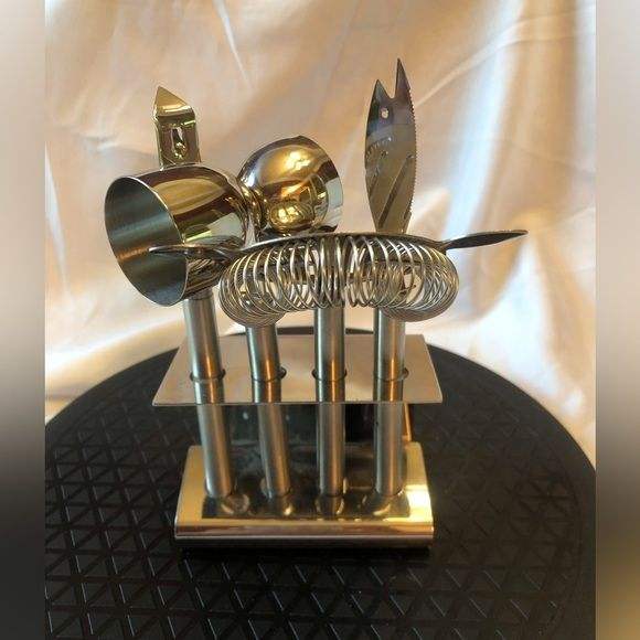 ชุดเครื่องมือบาร์โลหะครบชุด ประกอบด้วยอุปกรณ์เสริมที่จำเป็นสำหรับการผสม เสิร์ฟ และตกแต่งเครื่องดื่ม