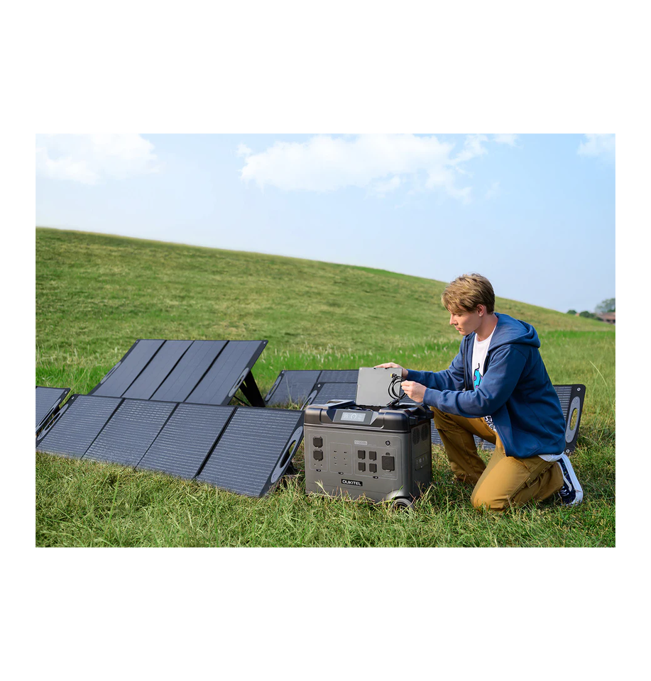 ชุดเครื่องกำเนิดไฟฟ้าพลังงานแสงอาทิตย์แบบพกพา 1000W พร้อมแผงโซลาร์เซลล์ 100W สายเคเบิล และที่ชาร์จในรถยนต์