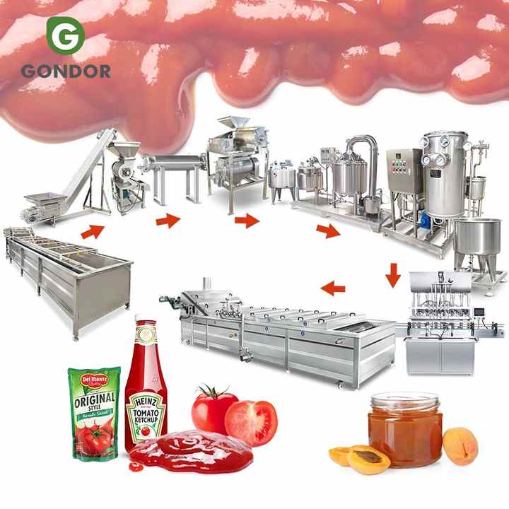 สายการผลิตซอสมะเขือเทศแบบกึ่งอัตโนมัติ พร้อมบรรจุขวด