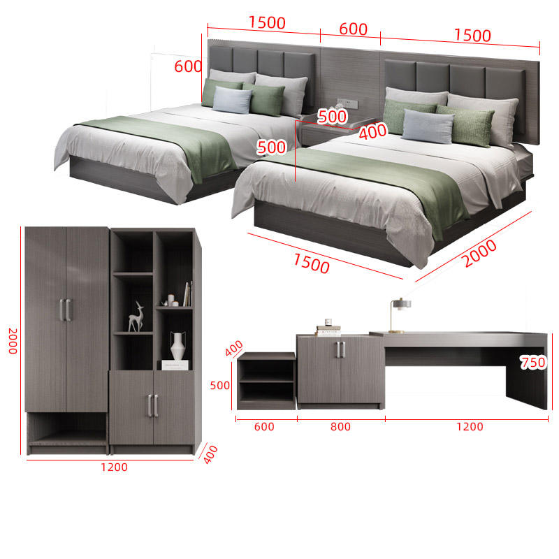 ชุดห้องนอนโรงแรมไม้สมัยใหม่ครบชุด สำหรับใช้ในโรงเรียน อพาร์ทเมนต์ โรงแรม ปรับแต่งขนาดได้ (เตียงเดี่ยว/เตียงคู่/เตียงควีนไซส์/เตียงคิงไซส์) ทนทาน