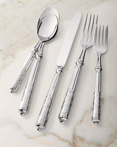 ชุดช้อนส้อมสแตนเลสครบชุดประกอบด้วยส้อมช้อนเสิร์ฟหลายชิ้นและมีดหรูหรา