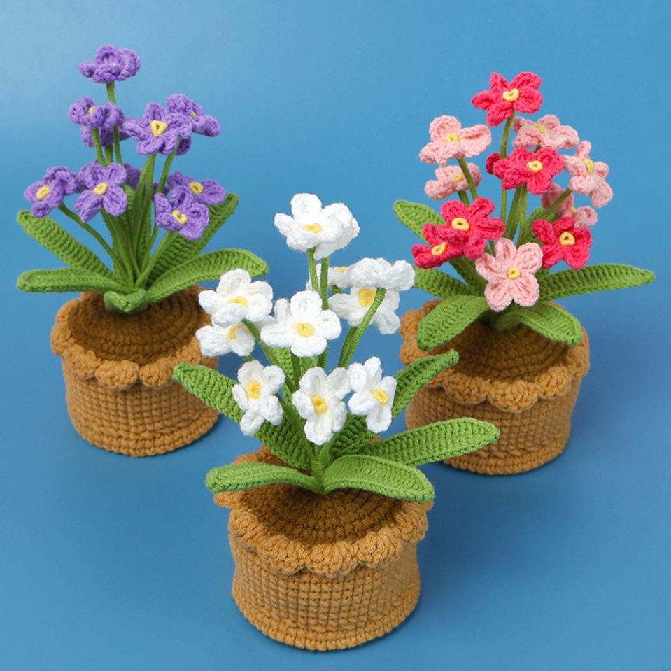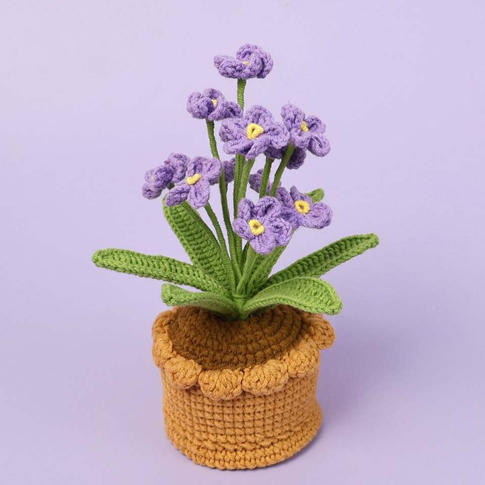 ดอกกล้วยไม้โครเชต์ถักไหมพรมสำเร็จรูปในกระถาง สำหรับเป็นของขวัญให้เด็กผู้หญิงในวันแม่ วันฮาโลวีน วันรับปริญญา และวันอีสเตอร์