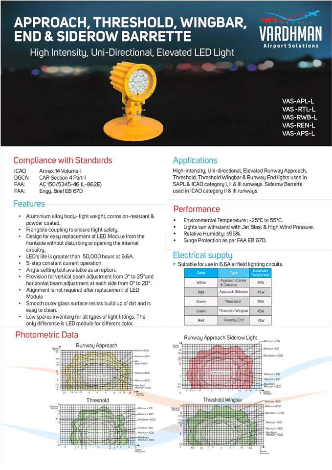 ได้มาตรฐาน icao/fa/iec ไฟ LED รันเวย์6.6A ทิศทางเดียวยกระดับ/ธรณีประตู/ท้ายแสงสำหรับการบิน