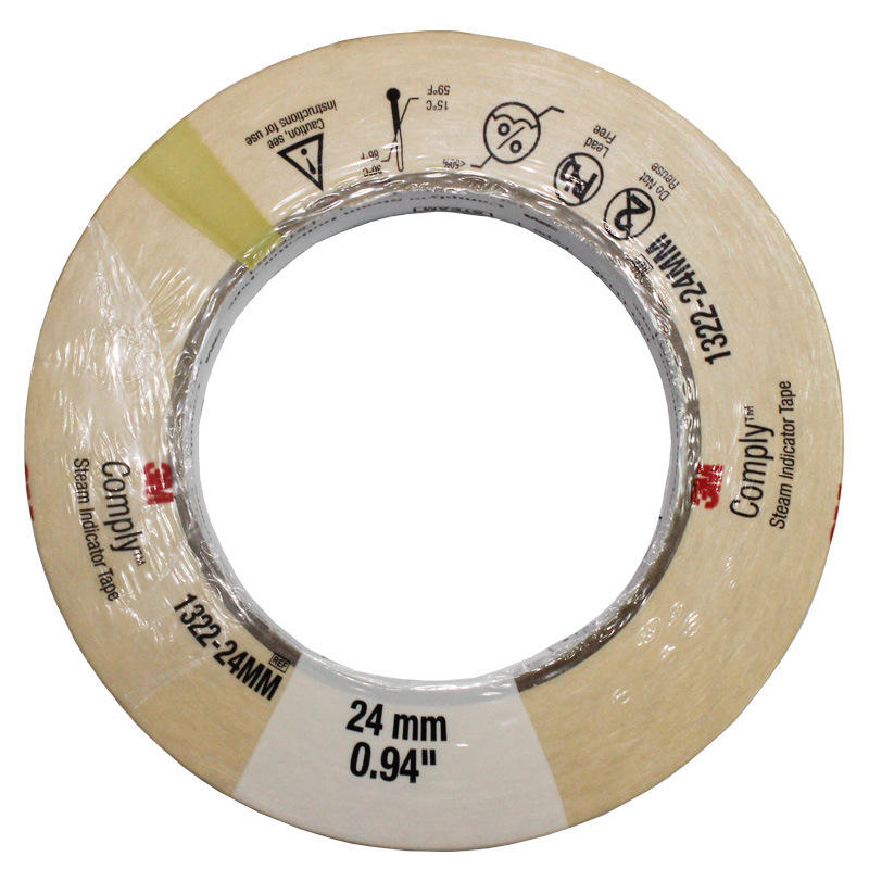 เทปตัวบ่งชี้การฆ่าเชื้อแบบไอน้ำ Comply ขนาด 24 มม. ความยาว 55 ม. สำหรับซองฆ่าเชื้อ
