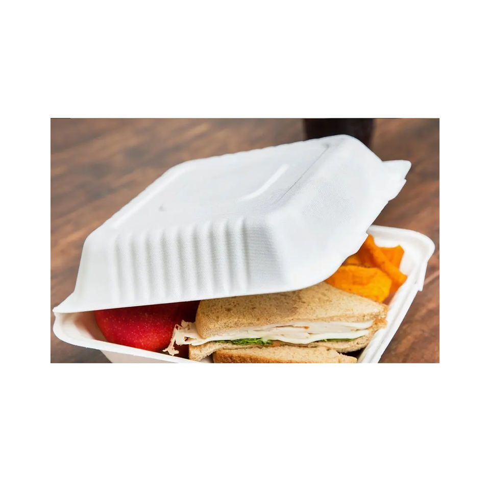 กล่องเบอร์เกอร์ทำจากอ้อยสำหรับห่ออาหารแบบไม่รั่วซึม