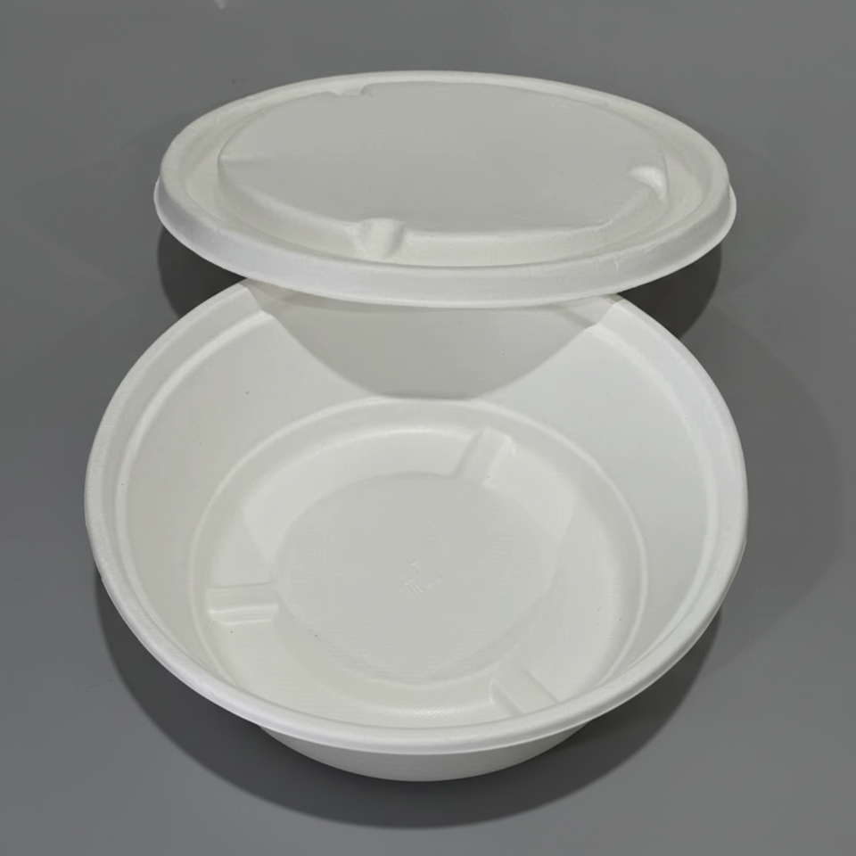 Compostable Bagasse round lid container Eco-Friendly Sugarcane Fiber Container for Hot & Cold Food, Leak-Resistant
