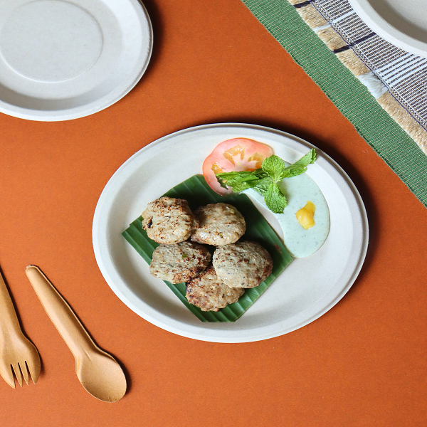 จานแบกาสสีขาวย่อยสลายได้ ขนาด 9 นิ้ว แบบกลม หนา ทนทาน สำหรับร้านอาหาร งานเลี้ยง และงานจัดเลี้ยง