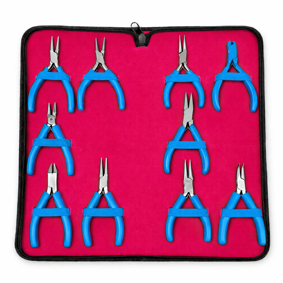 ชุดเครื่องมือทำเครื่องประดับ 10 ชิ้นที่ครอบคลุมสำหรับผู้เริ่มต้นและมืออาชีพ รวมถึงคีมตัดและอุปกรณ์ร้อยลูกปัด