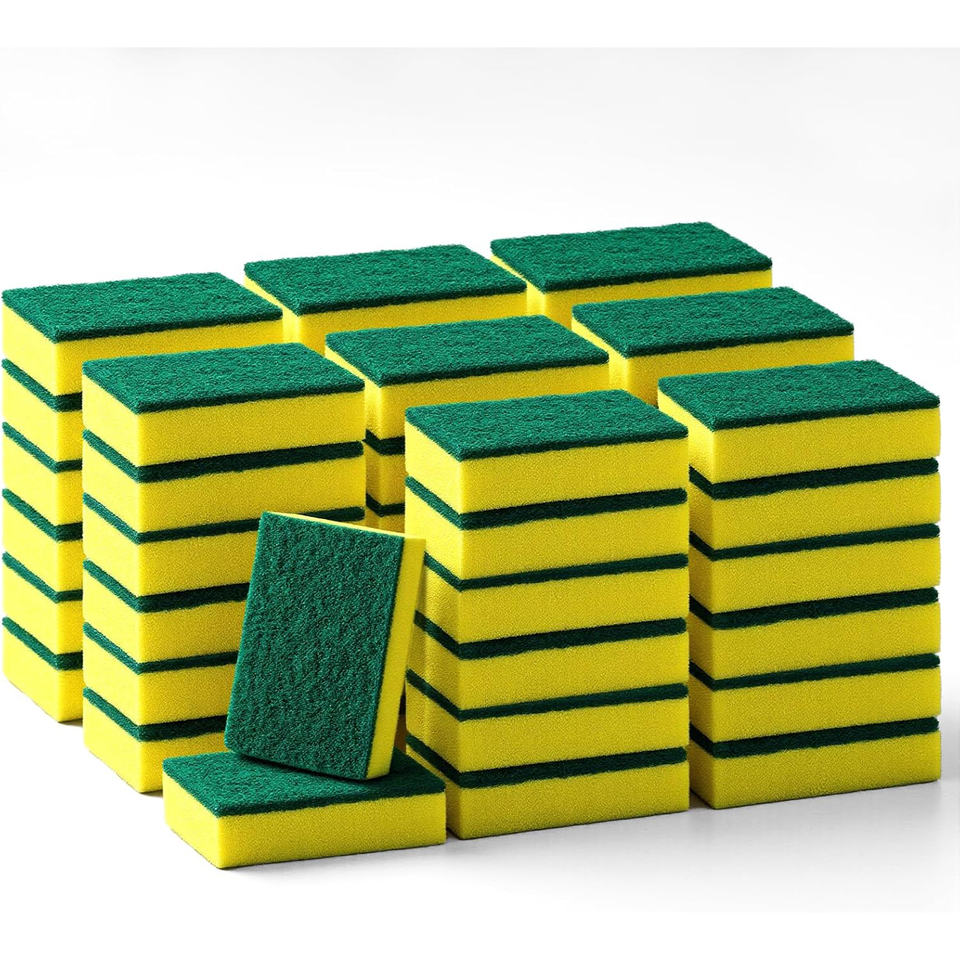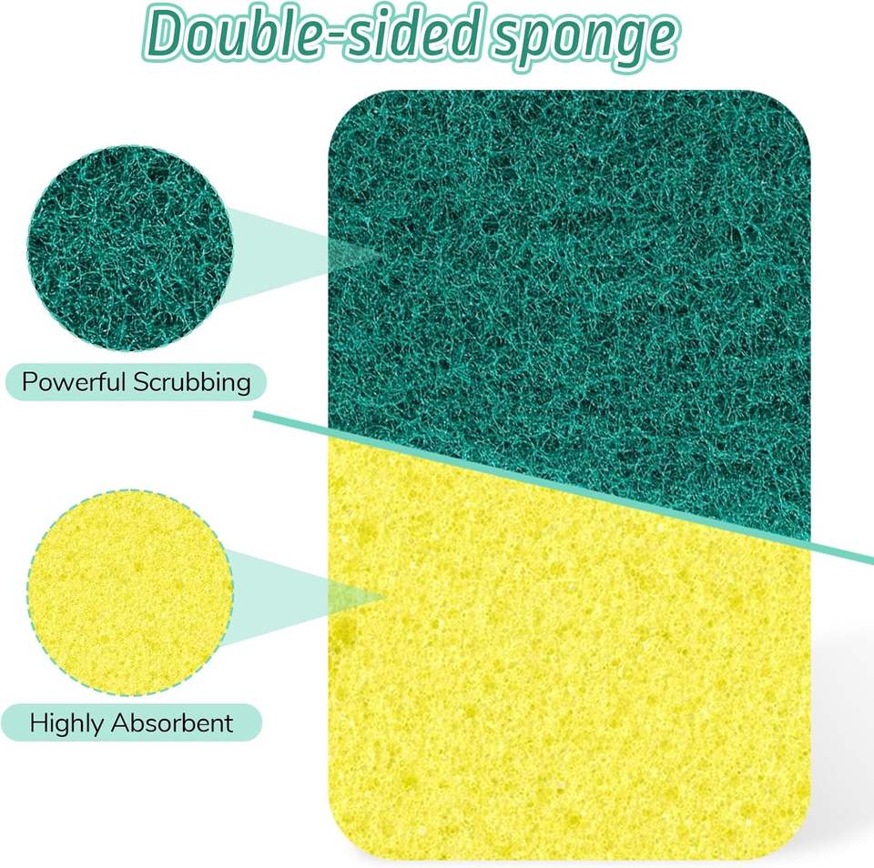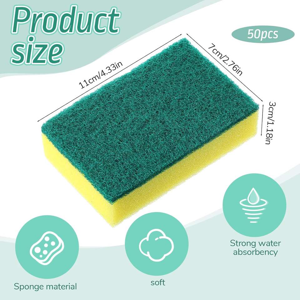 ฟองน้ำล้างจานไนลอนอัดแน่น ทนทาน ฆ่าเชื้อแบคทีเรีย สำหรับทำความสะอาดจาน ฟองน้ำขัดสีเขียวเหลือง