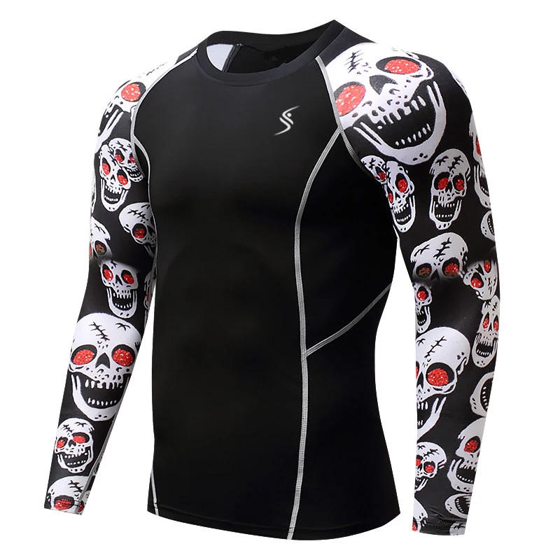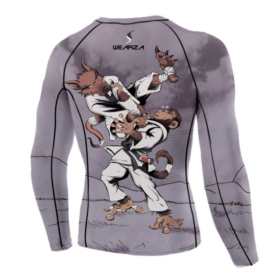 MMA เสื้อรัชการ์ดสำหรับผู้ชาย,เสื้อออกกำลังกายรัดรูปแขนยาวแบบปรับแต่งลายหินอ่อน