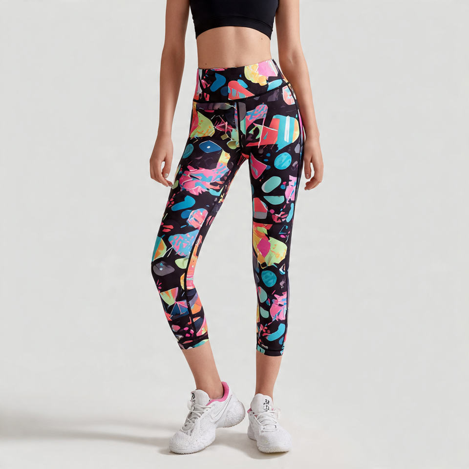กางเกงเลกกิ้งผู้หญิงเอวยางยืดพิมพ์ลายตามสั่งสำหรับออกกำลังกายและฟิตเนส