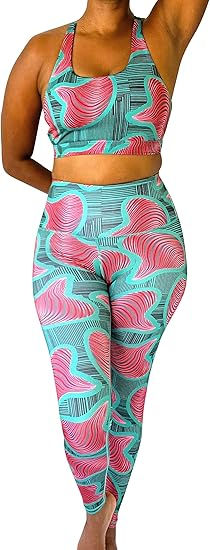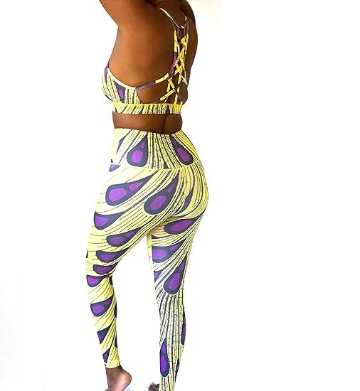 ชุดออกกำลังกาย 2 ชิ้นสำหรับผู้หญิง กางเกงโยคะไร้ตะเข็บแบบหนา กระชับสัดส่วน พร้อมเสื้อชั้นในกีฬา ลายพิมพ์แอฟริกัน เอวสูง