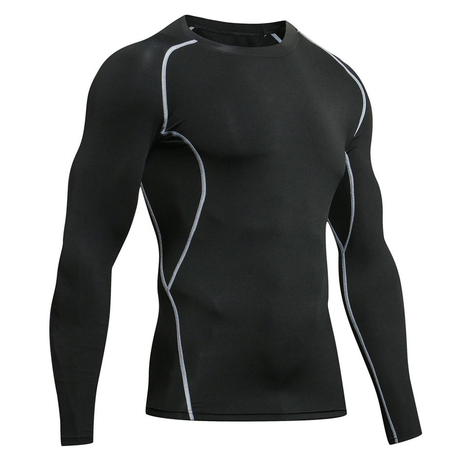 เสื้อคอมเพรสชั่นผู้ชาย คุณภาพสูง แห้งเร็ว ระบายอากาศได้ดี UPF50+ แขนยาว ยืดหยุ่นสูง เสื้อยืดออกกำลังกาย ฟิตเนส แอคทีฟ ยิม