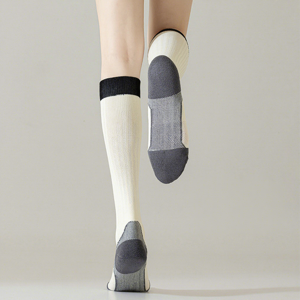 ถุงเท้ารัดกล้ามเนื้อผู้หญิง ความยาวน่อง สำหรับโยคะ วิ่ง ผ้าฝ้าย ระบายอากาศ แห้งเร็ว ซับเหงื่อ กันลื่น สีขาว ชมพู ม่วง เหลือง